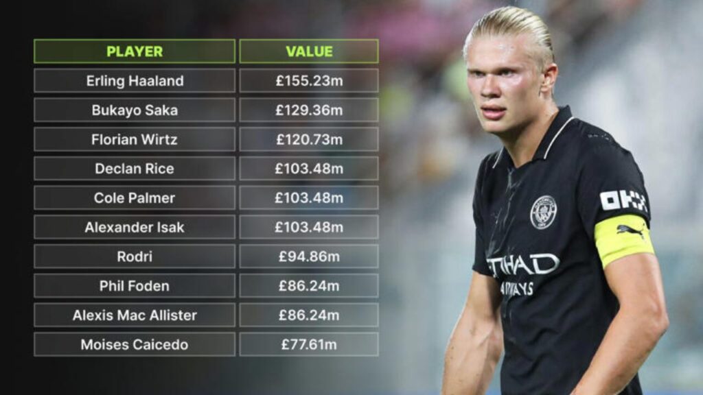 1️⃣ এরলিং হালান্ড (ম্যানচেস্টার সিটি) – £155.23 মিলিয়ন
