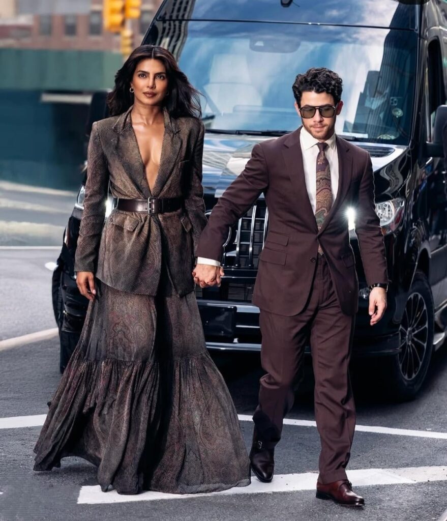 প্রিয়াঙ্কা এদিন পরে এসেছিলেন একটি কোট, ঝলমলে স্কার্ট ও কোমরে বেল্ট। অন্যদিকে নিকের পরনে ছিল বাদামি রঙের স্যুট, সাদা শার্ট ও টাই। তাদের এই লুক নিয়েই ভক্তরা সামাজিক যোগাযোগমাধ্যমে আলোচনায় মেতে ওঠেন। অনেকেই মন্তব্য করেন—এই সাজ যেন মনে করিয়ে দেয় তাদের প্রথম মেট গালা লুক, যা থেকেই শুরু হয়েছিল তাদের প্রেমকাহিনি।