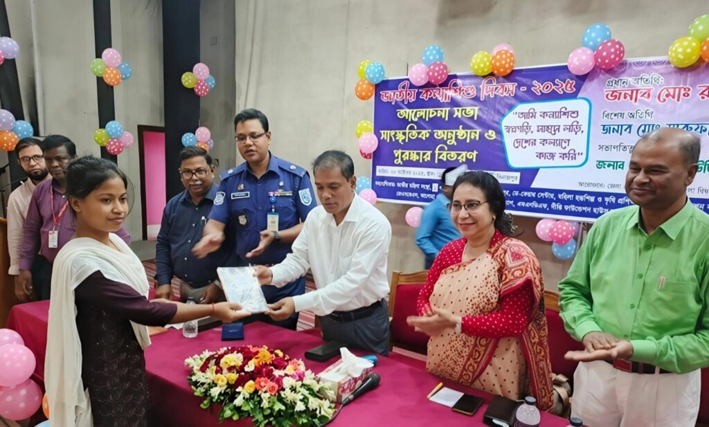 জাতীয় কন্যাশিশু দিবস উপলক্ষে আয়োজিত অনুষ্ঠানে প্রধান অতিথি হিসেবে বক্তব্য রাখেন, জেলা প্রশাসক মো. রফিকুল ইসলাম। তিনি তার বক্তব্যে বলেন,কন্যাশিশু জন্ম হলে তাকে অবহেলা করা যাবেনা। আমরা প্রত্যেকেই একজন কন্যাশিশু যখন প্রাপ্ত বয়সে মা হয়,আমরা সেই মায়ের গর্ভে থেকেই জন্ম নিয়ে আজ এই অবস্থানে এসেছি।