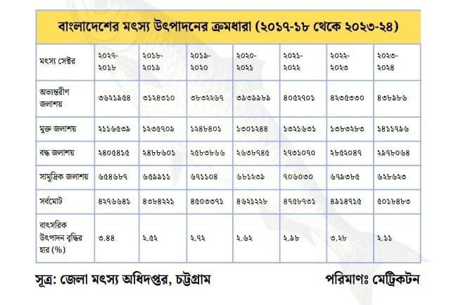 বাংলাদেশের অর্থনীতিতে GDP-তে অবদান ২.৫৩ শতাংশ, খাদ্য নিরাপত্তা, প্রায় ১ কোটি ৮০ লক্ষ মানুষের প্রত্যক্ষ ও পরোক্ষ কর্মসংস্থান সৃষ্টির মাধ্যমে করে বেকারত্ব হ্রাস, বাণিজ্যের সম্প্রসারণ ও রপ্তানির উর্বর খাত হিসাবে মৎস্য খাতের অবদান অনস্বীকার্য। (FAO) এর The State of World Fisheries and Aquaculture 2024 এর প্রতিবেদন অনুযায়ী মিঠা পানির মাছ, বন্ধ জলাশয়ের মাছ,সামুদ্রিক মাছ ও ইলিশ মাছ আহরণে যথাক্রমে ২য়, ৫ম, ১৪তম ও ১ম অবস্থানে রয়েছে।